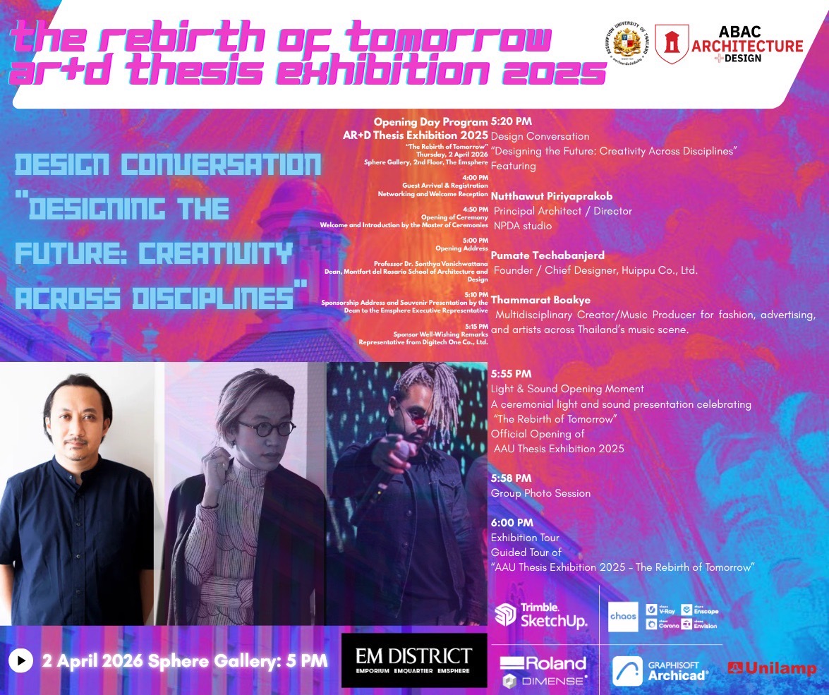 September 9, 2024Launches Commemorative Book: AAU 25+25: The Road Ahead Assumption University’s School of Architecture and Design proudly presents AAU 25+25: The Road Ahead, a commemorative book celebrating 25 years of achievements, growth, and vision. The book offers a deep reflection on AAU’s significant milestones, featuring: 🔹 25 Inspirations: Interviews and insightful quotes from 25 key figures, … Read More